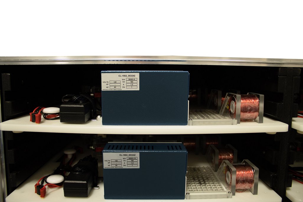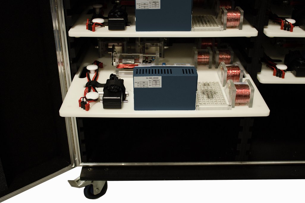 Contenu de l’ensemble | Douze (12) unités complètes CL-1902. Un (1) coffre de rangement CL-1902-12. Trois (3) kits de démonstration du champ magnétique. Deux (2) fils de raccordement noirs de 75 cm (30 po). Deux (2) fils de raccordement rouges de 75 cm (30 po). Dix (10) courroies de 3 mm (1/8 po) d’épaisseur, 5,67 cm (2,234 po) de diamètre intérieur et 6,4 cm (2,512 po) de diamètre extérieur. Deux (2) tiges en aluminium. Deux (2) tiges en acier. Deux (2) tiges aimantées. Trois (3) boussoles en plastique. |
