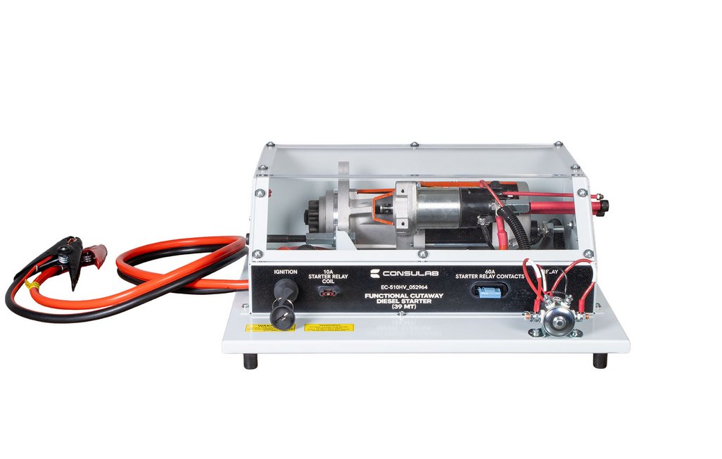 Attraits pédagogiques | Démarreur diesel en coupe complètement fonctionnel. Permet aux étudiants de bien voir les composants internes et de comprendre leur fonctionnement en temps réel. Couvercle de protection en plexiglas. Fonctionne à 12 V. |