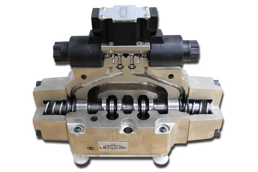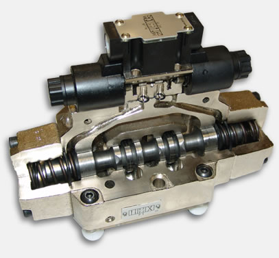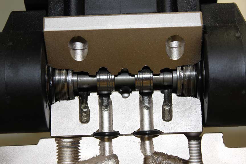 Attraits pédagogiques | Conception artisanale et bien détaillée. Passages d'huile en coupe pour permettre de voir comment la soupape à siège de commande pilotée entraîne la soupape principale. Les deux soupapes sont dotées de tiroirs entièrement fonctionnels. |