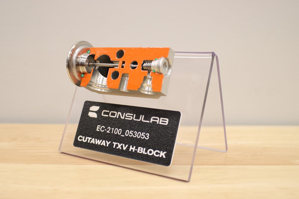 Attrait pédagogique | Permet de voir le fonctionnement interne d'un bloc détendeur thermostatique de type H (TXV) utilisé dans les systèmes CVAC pour régulariser le débit du liquide réfrigérant. |