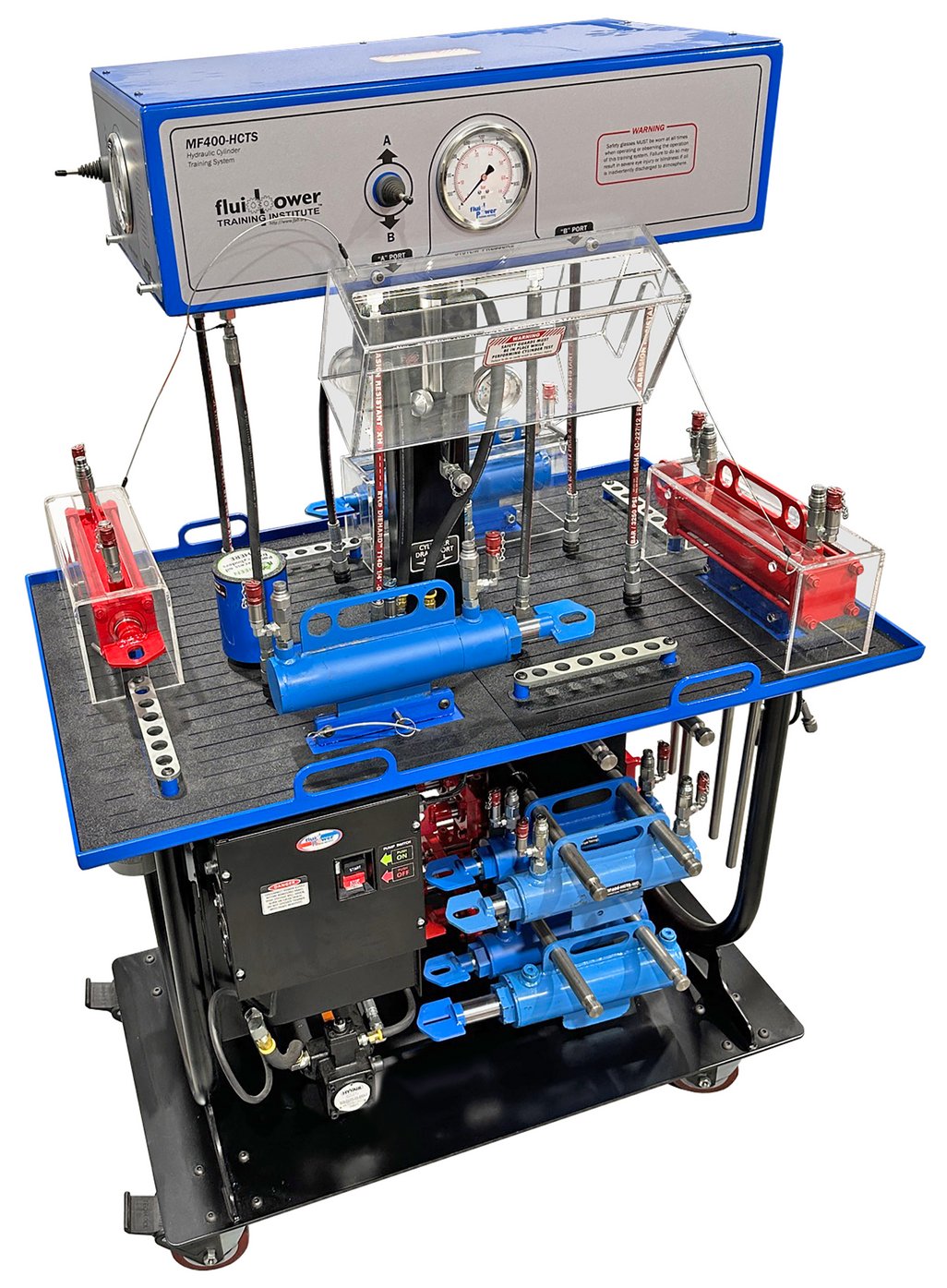 Features | Four-station mobile training module equipped with two (2) rigid and two (2) swivel-lock casters. Steel and aluminum construction with powder coat finish. Welded steel anchors and cradles with mechanical locks to secure the cylinders for safety and handling. Four (4) clear acrylic, cylinder safety covers at each cylinder station to protect the student from oil spray in the event they did not reassemble the cylinder, or install the seals, correctly. Can store up to eighteen (18) hydraulic cylinders (available for purchase separately) |
