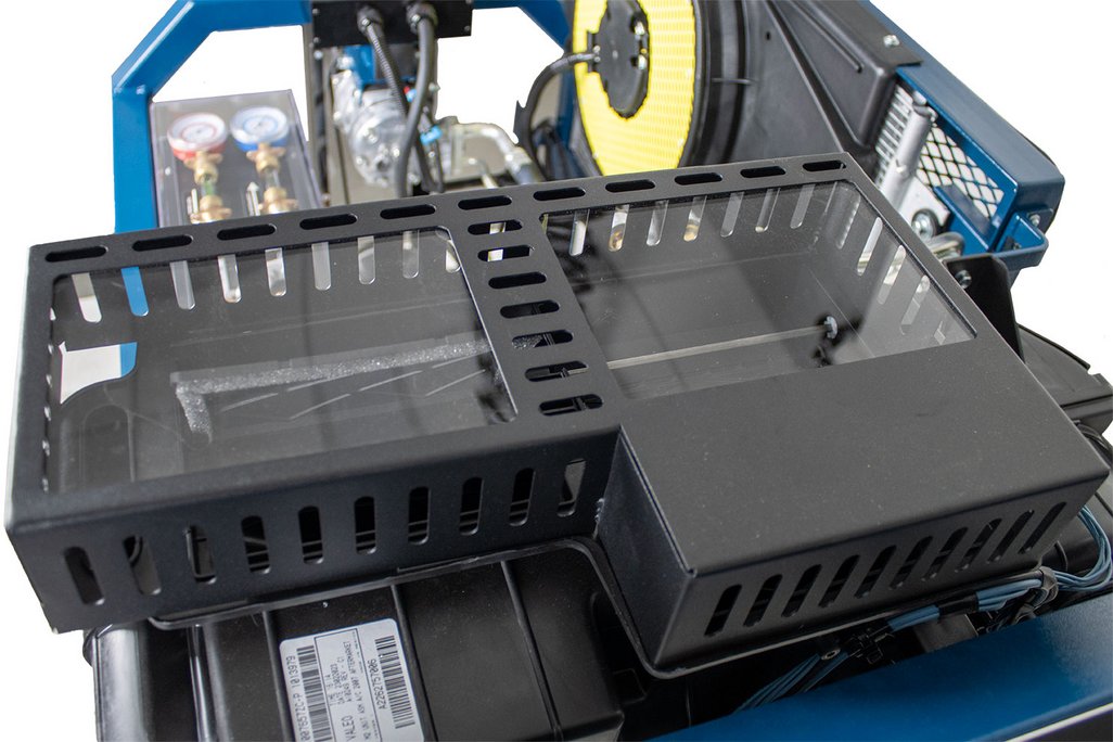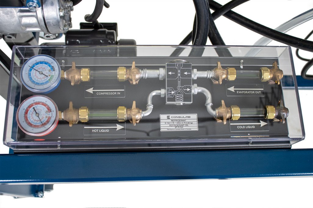 Educational Advantages | Accessibility of HVAC components is enhanced by not having the requirement of whole vehicles in the shop Ability to insert faults creating real-world abnormal operating conditions for student diagnostic training Trainer can have refrigerant recovered, evacuated and recharged using service equipment with trainers OEM service ports A/C high and low side gauges and service port fittings for evacuation and recharge All rotating components are covered with safety shields or guards to prevent injuries Ability to operate a functional HVAC system in a classroom environment without needing exhaust extraction equipment |