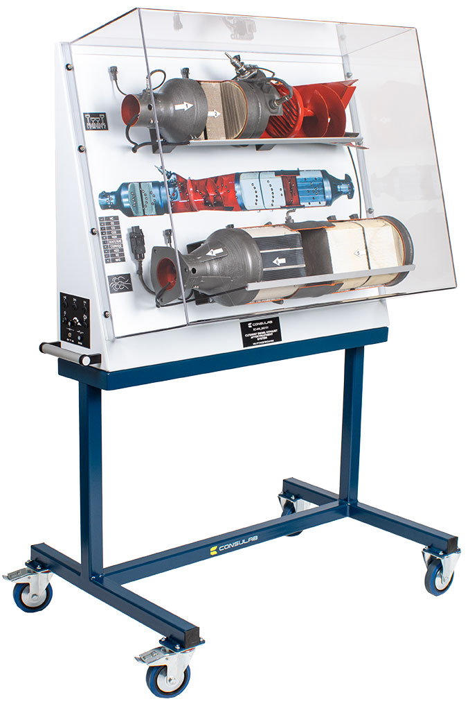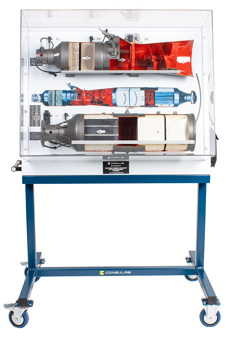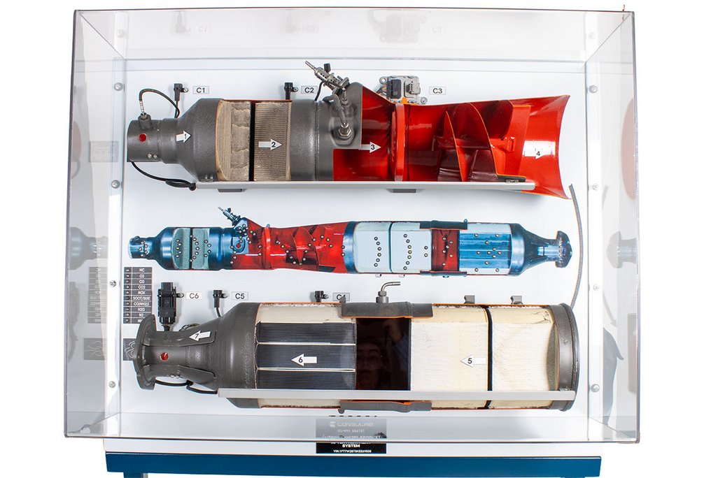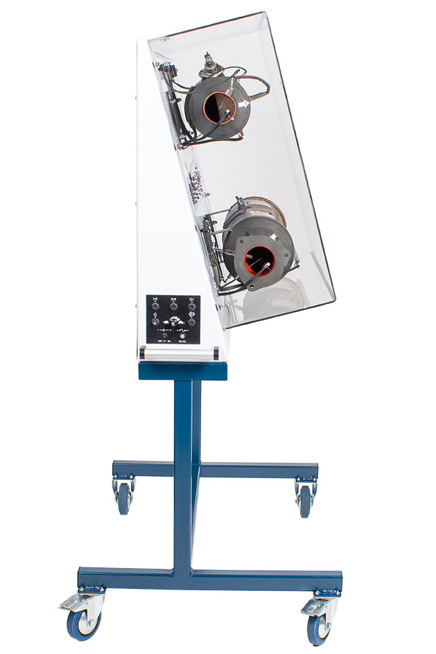 Educational Advantages | Includes all catalysts, filters, dosing valve and sensors Includes colored LED’s to demonstrate exhaust gas movement through the system A different colored LED indicates each exhaust gas compound Adjustable speed progression of LED’s allows for customization to your student exercises Compact design for use in all classrooms and labs A clear protective cover over the system to prevent contact with catalyst materials Instructor can select an automatic mode which cycles through all chemical reactions or a manual mode to go through the stages step by step |