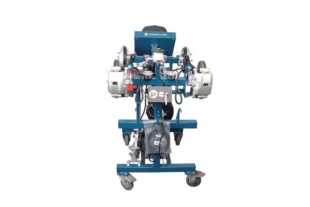Features | “Real” automotive components with fully functional ABS 3-channel hydraulic system Equipped with DLC for scan tool data stream hookup Mechanical faults in the friction components are designed to be diagnosed by students while performing a brake inspection OEM vehicle instrument panel with indicator lamps ABS Control Unit breakout box for hookup of DVOM and Oscilloscope Hydraulic pressure gauges at each wheel (4) Fault insertion box (lockable) with six (6) electrical faults Includes four (4) mechanical faults or defects on friction parts, allowing the student to make an effective diagnosis during brake inspection Four (4) hubs equipped with brakes (2 discs and 2 drums)(NOTE- discs, drums, wheel cylinders, calipers and all friction materials are new. All other OEM components are recycled from actual vehicles) Fully functional parking brake system 55A DC power supply included Heavy Duty metal stand with casters for easy transport of trainer All routine brake service procedures can be performed on this trainer including component replacement, adjustments and hydraulic bleeding Power requirements: 110V @ 20 amps or 220V @ 10 amps (specify when ordering) Sturdy powder coated metal stand with two locking swivel and two fixed casters |