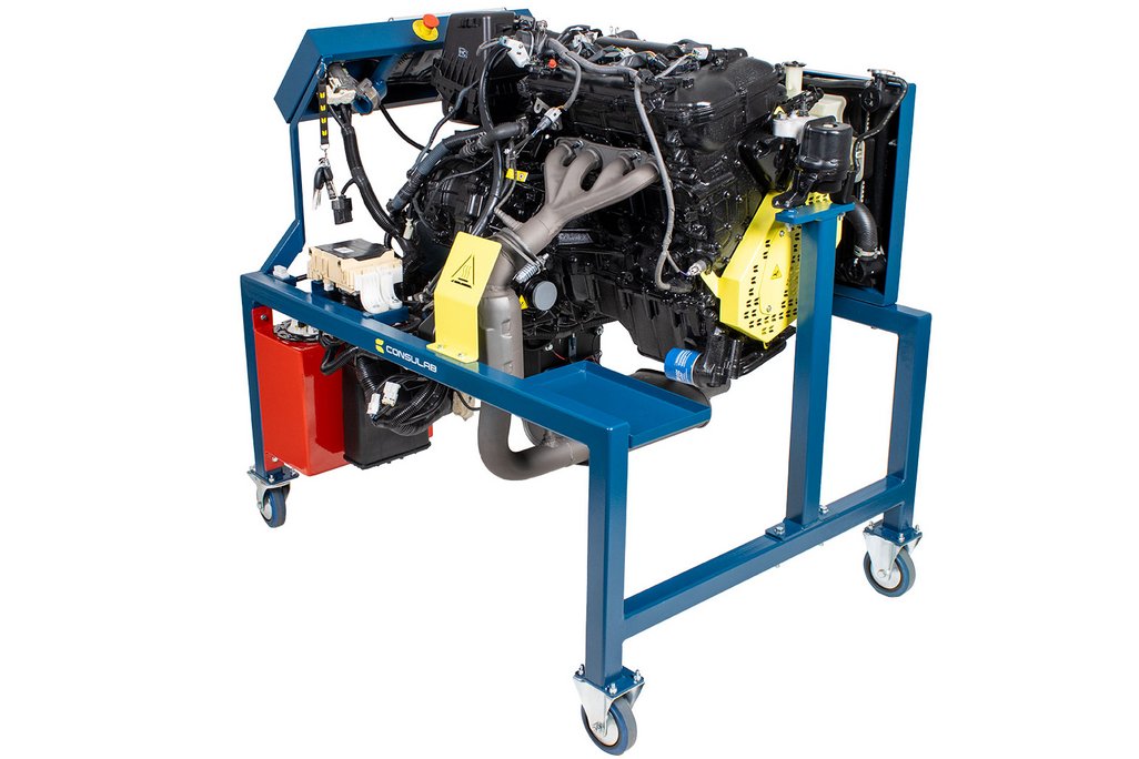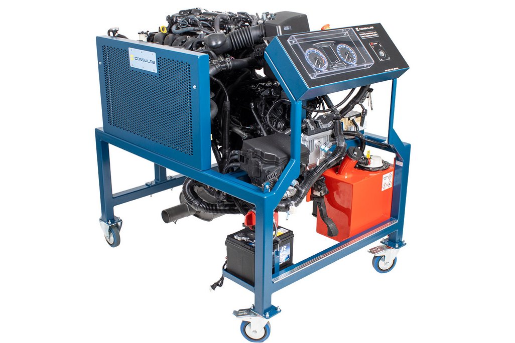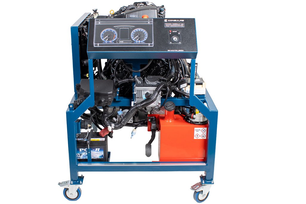 Features | Recycled engine, transmission and complete assembly of components A fully operational engine that starts/runs with OEM instrument panel Three “permanent” inserted industry common mechanical faults and one defective component fault that can be removed/replaced. Provides a “real world” running engine that will demonstrate all negative operational symptoms based on the faults. Functional Electronic Throttle Control, Catalytic Converter and Variable Valve Timing systems Emergency stop button Customized OEM exhaust system OEM Fuel Pump Module OEM power distribution center with circuit protection All electrical components match OEM wiring schematics and service information Automatic regulated 12V battery charger with master power disconnect switch Robust trainer frame and stand with special design features. Easy removal and installation of radiator Front motor mount is removable providing access to front engine timing cover Defective control component that can be replaced with a non-defective unit correcting the fault Included tool storage tray Removable safety shields on all rotating components Additional instructor led engine component R&R (timing chain, etc) |