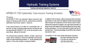 Purpose - The MF500-HT-TSE is an instructors “dream-come-true” with respect to teaching state-of-the-art, electronically-controlled hydrostatic transmission systems - hands-on. It can even be driven a